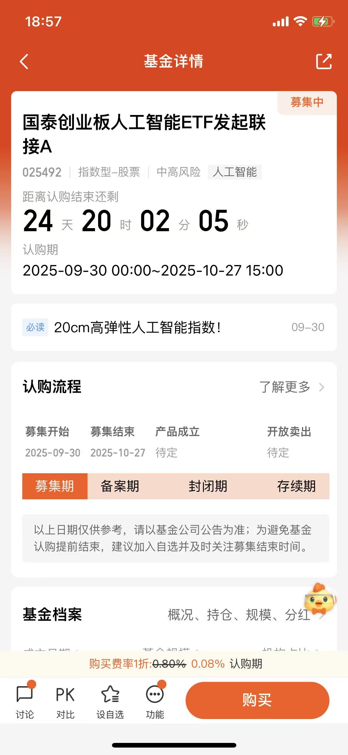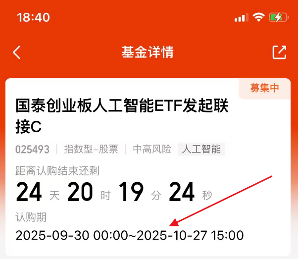 这基是新基金,国泰创业板人工智能ETF发起联接C(025493)的认购期是9月30日到10月27日。正好覆盖了节后光模块可能调整的窗口期。如果真的出现回调,那么也算是给了基金管理人建仓的机会,让其能够在相对舒适的价格区间布局。