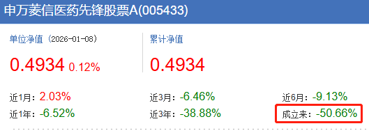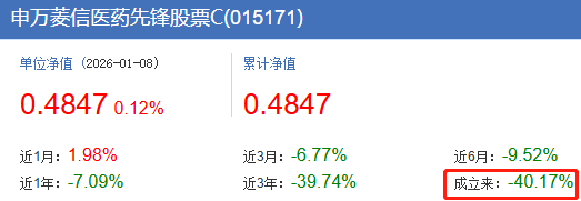 资料显示,申万菱信医药先锋股票A/C分别成立于2020年11月和2022年3月,但截至2026年1月8日,其累计收益率跌幅高达50.66%和40.17%。