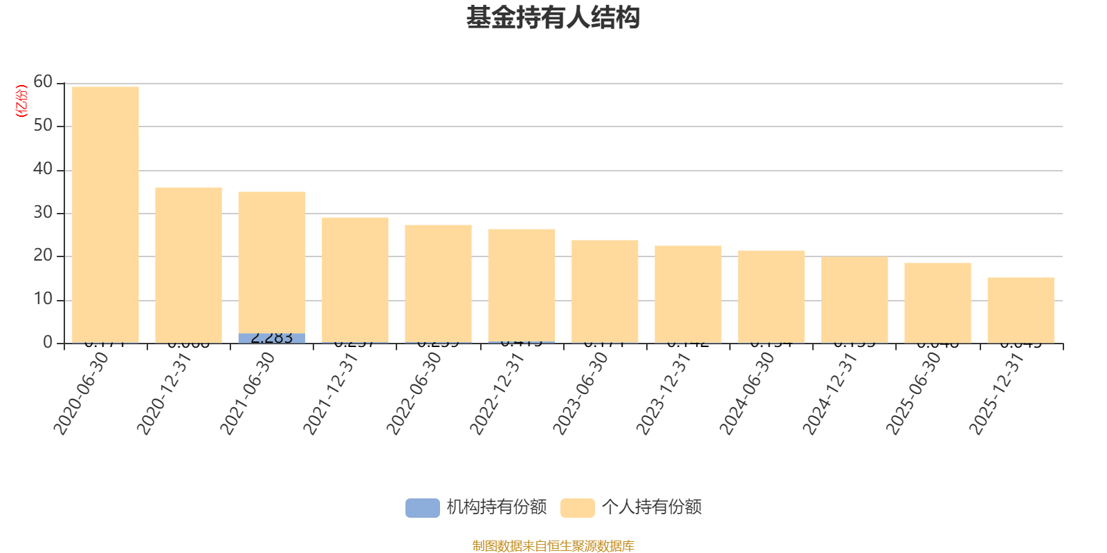截至2025年12月31日,基金持有人共计4.93万户,合计持有15.14亿份。其中管理人员工持有118.31万份,占比0.08%,机构持有份额占比0.30%,个人投资者占比99.70%。