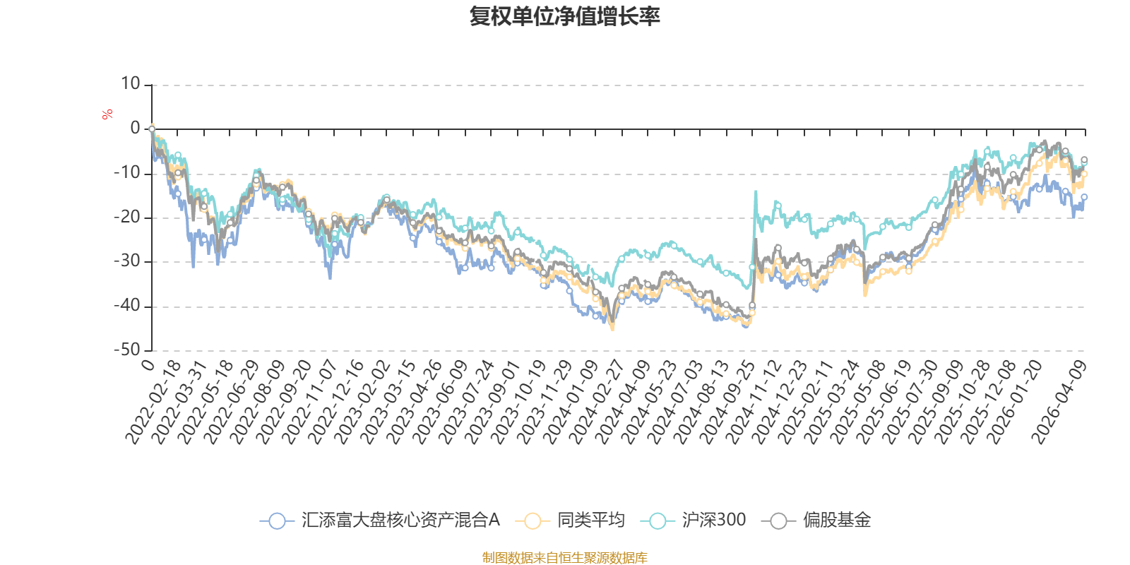 截至4月9日,汇添富大盘核心资产混合A近三个月复权单位净值增长率为-1.97%,位于同类可比基金92/185;近半年复权单位净值增长率为-8.47%,位于同类可比基金151/185;近一年复权单位净值增长率为29.41%,位于同类可比基金117/185;近三年复权单位净值增长率为8.36%,位于同类可比基金112/177。