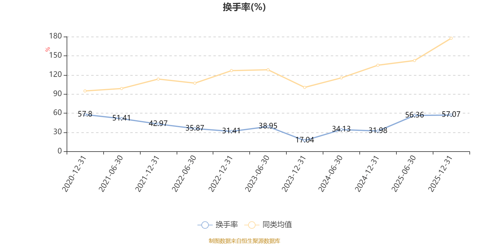截至2025年12月31日,基金最近一年换手率约113.1%,持续低于同类均值。