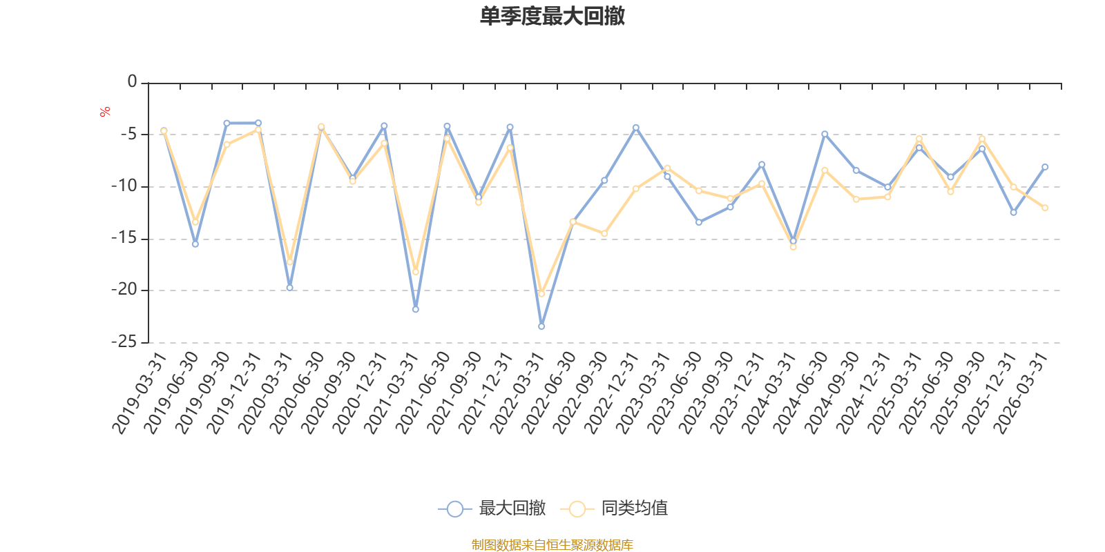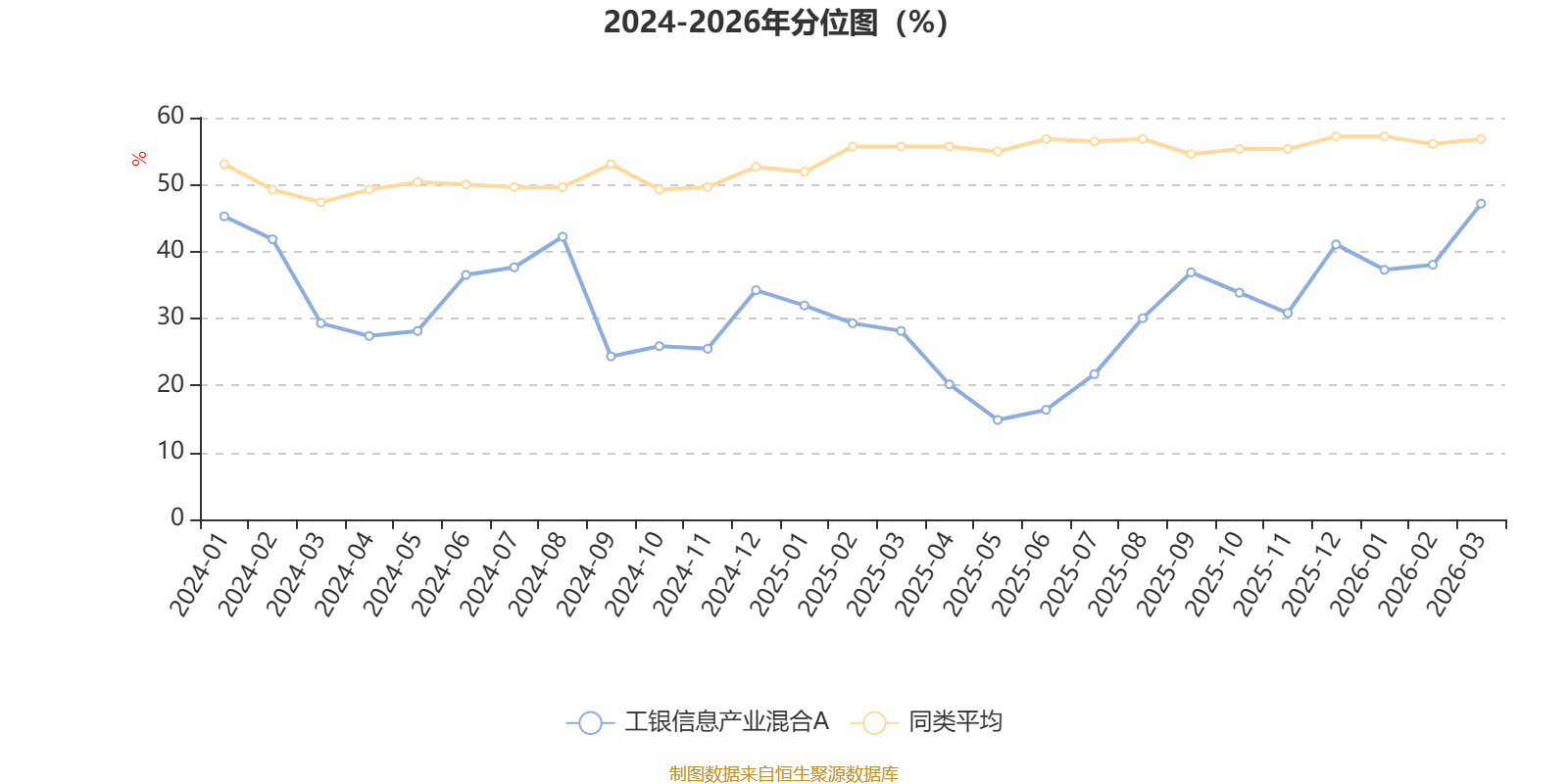 通过所选区间该基金净值增长率分位图,可以观察该基金与同类基金业绩比较情况。图为坐标原点到区间内某时点的净值增长率在同类基金中的分位数。