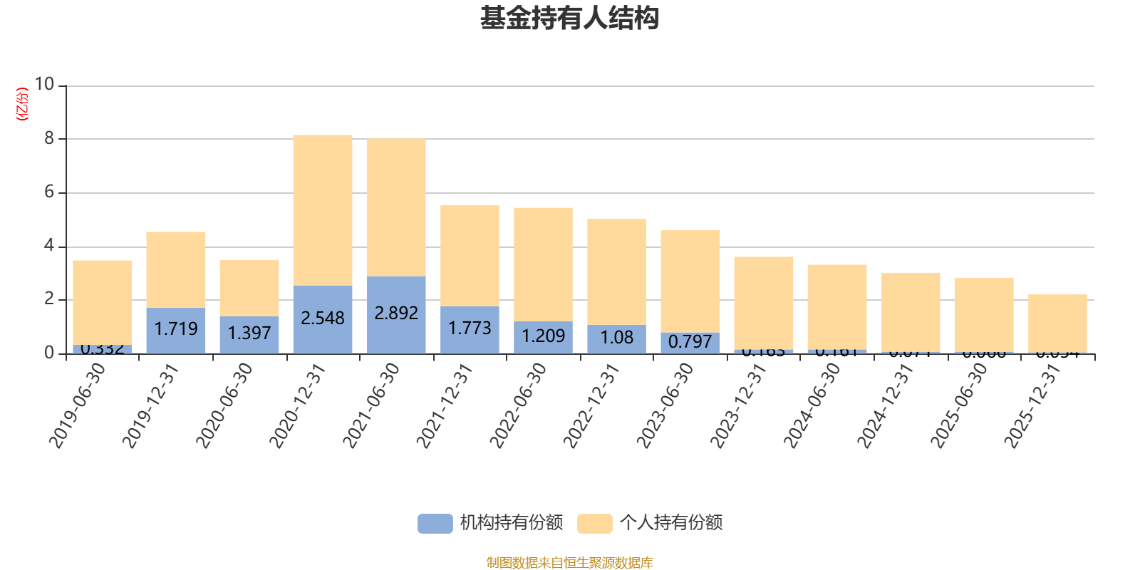 截至2025年12月31日,基金持有人共计9.44万户,合计持有2.22亿份。其中管理人员工持有21.44万份,占比0.10%,机构持有份额占比2.44%,个人投资者占比97.56%。